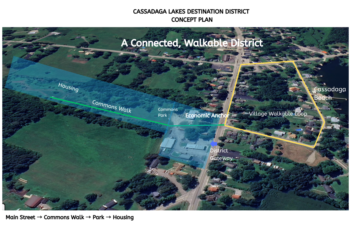 The Cassadaga Lakes Destination District is designed to capture more of the activity already moving through the village.